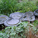 Hier können die Klänge des über die Flowform-Kaskade fließenden Wassers erlebt werden. Die spezielle Form der Flowform-Schalen versetzt das Wasser in eine schwingende und gleichzeitig energetisierende Bewegung. Diese kann von mehreren Punkten aus beobachtet und am unteren Ende der Kaskade auch durch Berührung sinnlich erfahren werden. Die Kaskade ist vom Sitzplatz davor, von der Wiese und dem gegenüberliegenden Café gut wahrnehmbar.